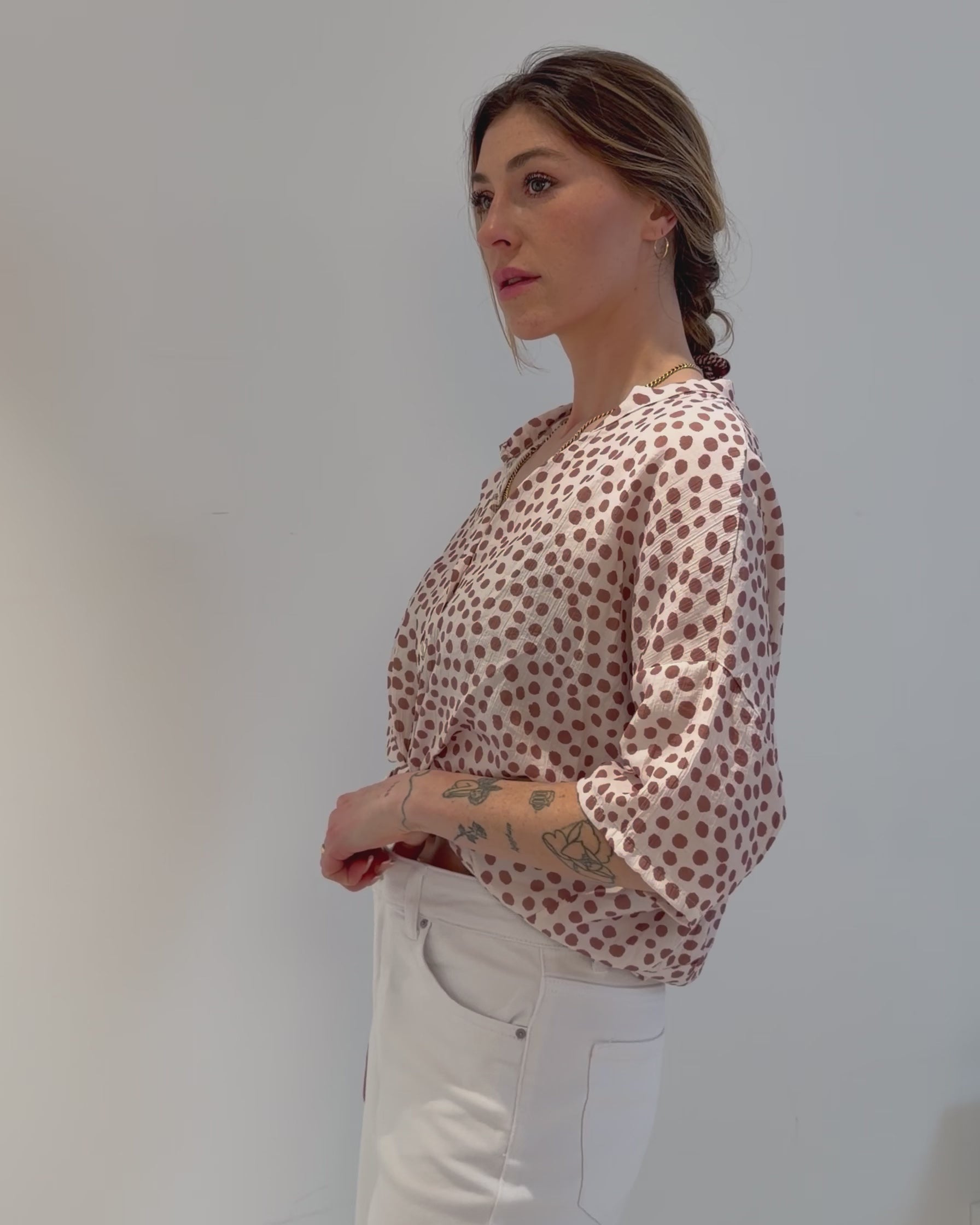 Entdecke die Punkte Bluse mit Knoten – ein stilvolles Highlight für jede Garderobe!